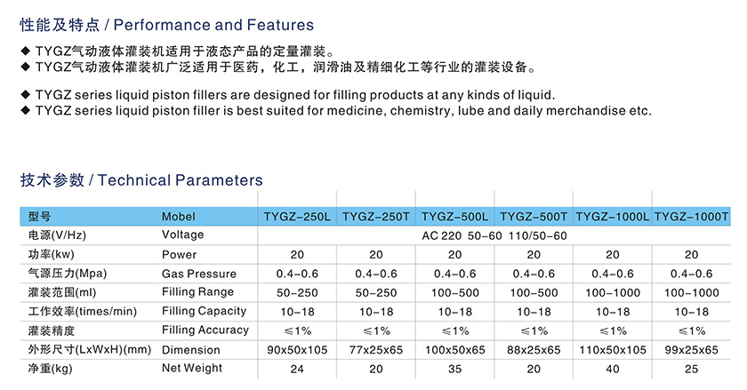 TYGZ-500L Pneumatic Liquid Filling Machine