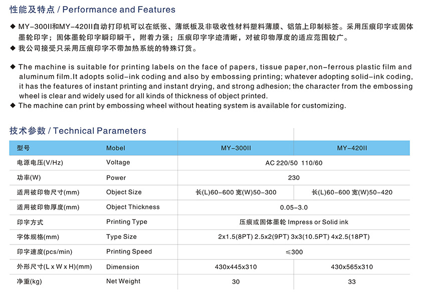MY-300II压痕或固体墨轮打码机