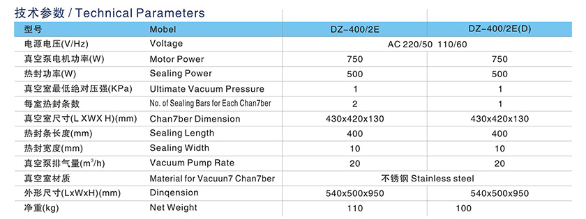 DZ-400/2E单室真空包装机